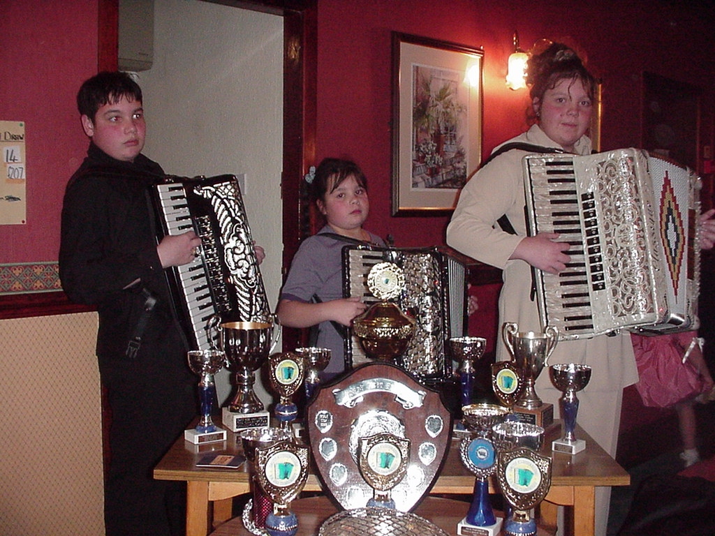 SARAH JANE LANGTON, ANDREW FIGG AND WILLIAM WITH THEIR AWARDS |
