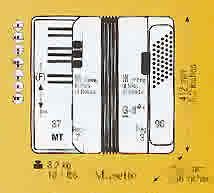 The Opal has the exact same size as the 72 bass Achat. The 37 treble keys are slightly smaller than regular sized keys which allows to accommodate them in the smaller housing. It has 3 banks of reeds for the treble side, however it comes with 7 switches for convenience. 96 basses with 4 reed banks and three switches. This instrument is a real nice alternative for somebody looking to cut down on weight and size, but not losing any tone range.